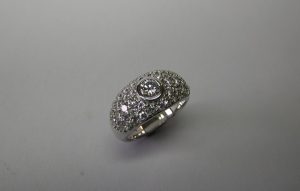Contemporary design white gold ring bezel and flush set with round brilliant cut diamonds. Suitable for any occasion.